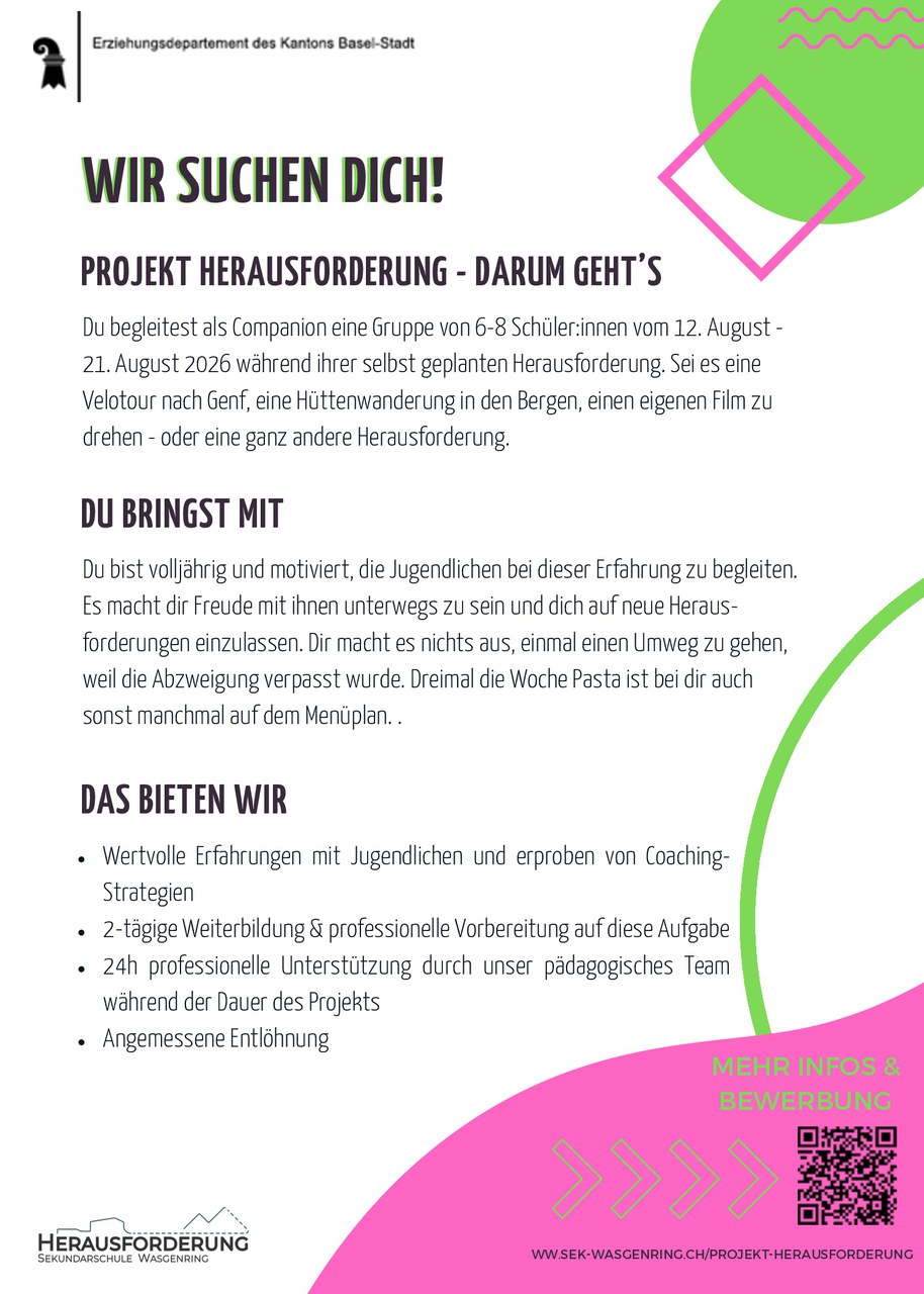 >>> Mehr Informationen zum Projekt Herausforderung an der Sek Wasgenring <<<
